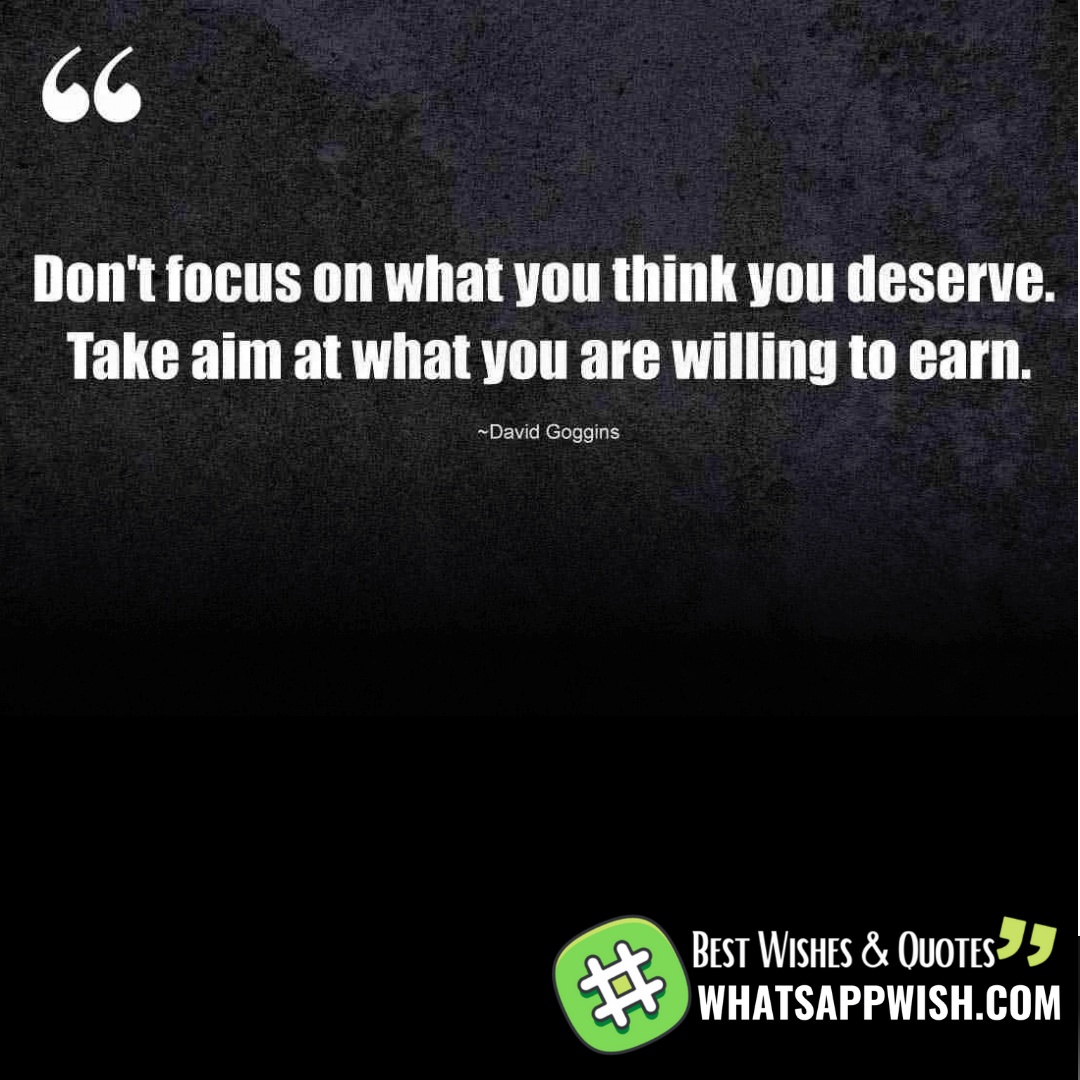 “Don’t focus on what you think you deserve. Take aim at what you are willing to earn.” - David Goggins